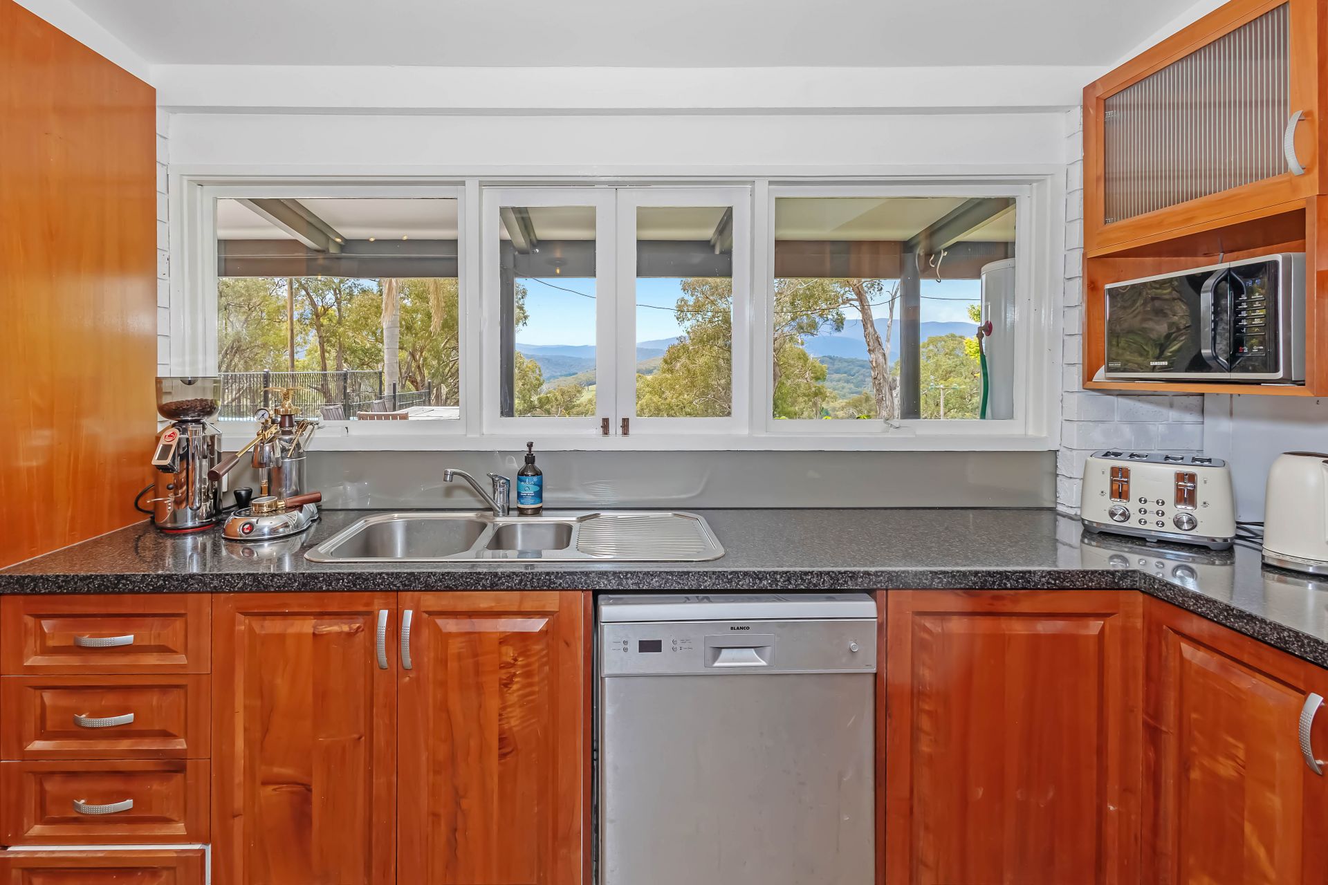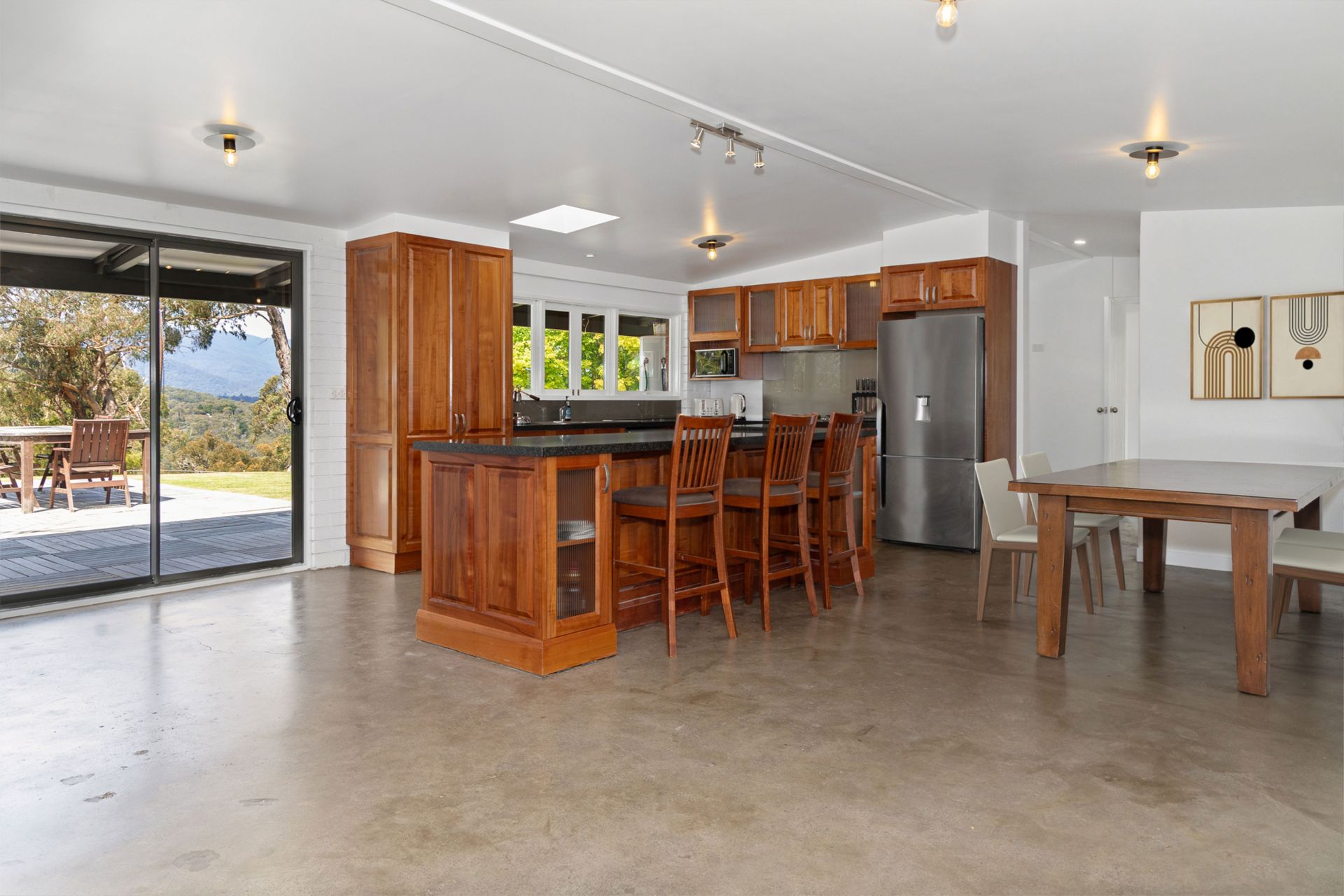 This exclusive property offers spacious interiors, an expansive central kitchen featuring stone benchtops and Myrtle cabinetry, all framing breathtaking mountain views. The versatile floorplan includes a large living area, a study nook, and spacious bedrooms, including a large master suite or optional rumpus room that lets you soak in the scenery from expansive picture windows.