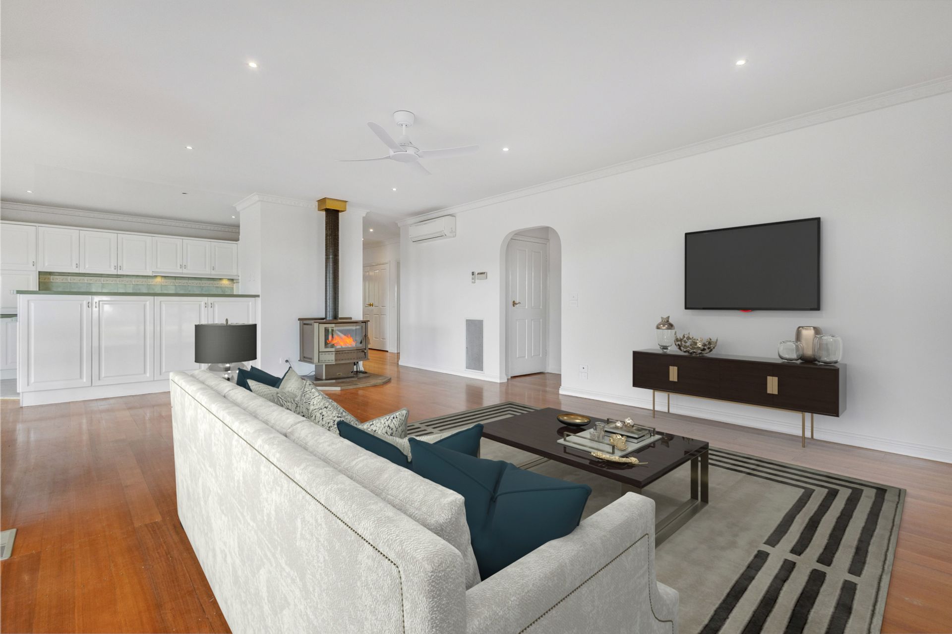 This beautifully appointed home showcases polished timber floors throughout, creating a warm and inviting atmosphere. The master suite boasts a walk-through robe and ensuite effect, while a spacious family bathroom serves the rest of the home. With both formal and informal living zones, a dedicated study, and a well-equipped kitchen with a generous walk-in pantry, this home caters to all your culinary and lifestyle needs. A large central wood heater and split systems ensure comfort year-round.