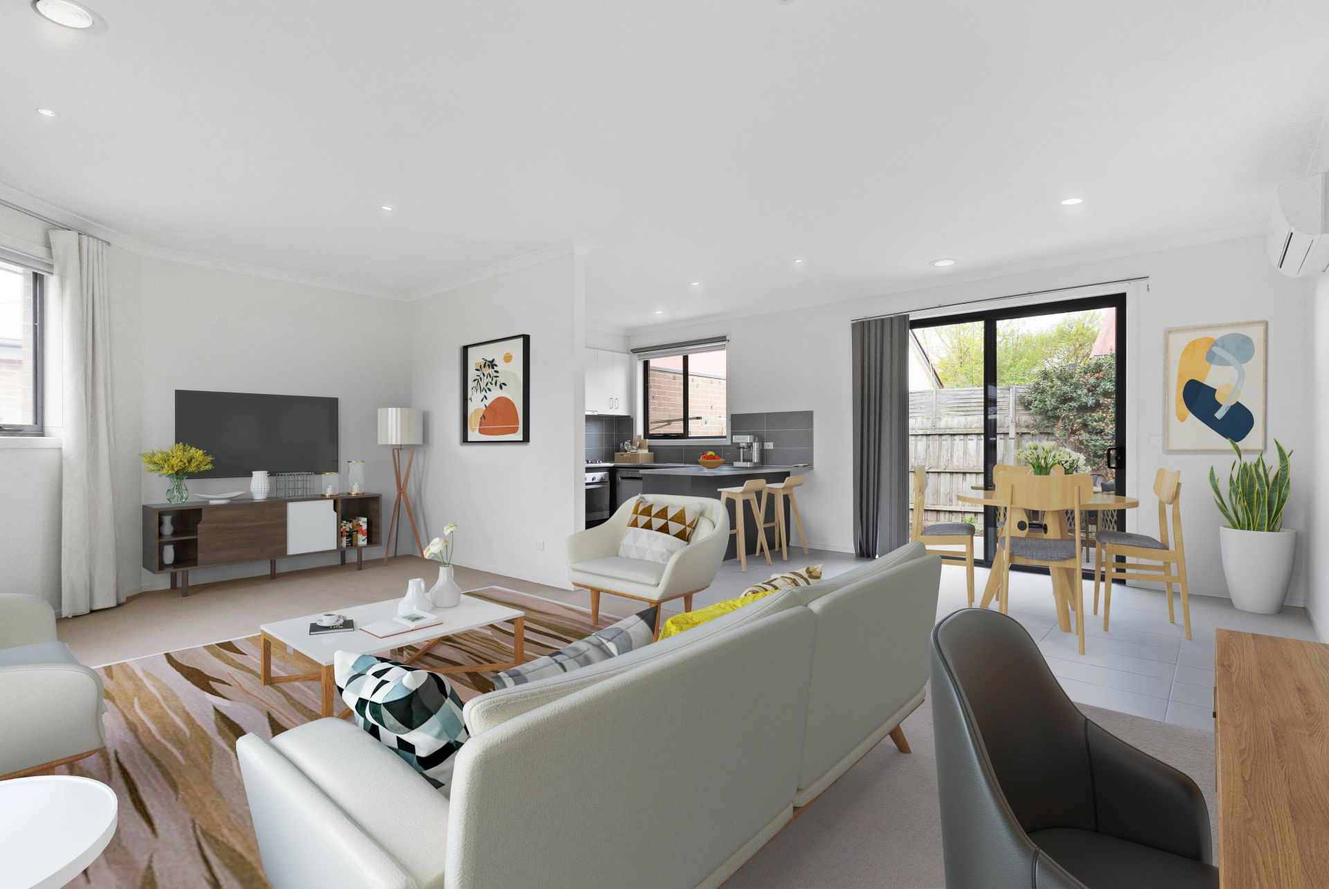 The light-filled, open-plan lounge features both a split system and ducted heating, providing comfort throughout the seasons. The contemporary kitchen, with generous cupboard and bench space, effortlessly flows into the dining area and extends to a serene, private courtyard-ideal for entertaining. The single carport adds to the convenience of this exceptional home.