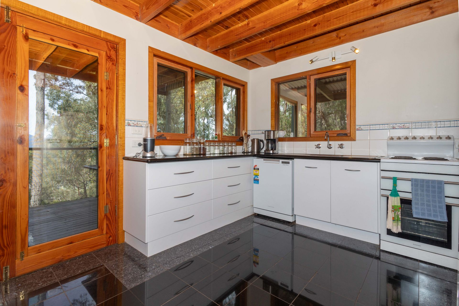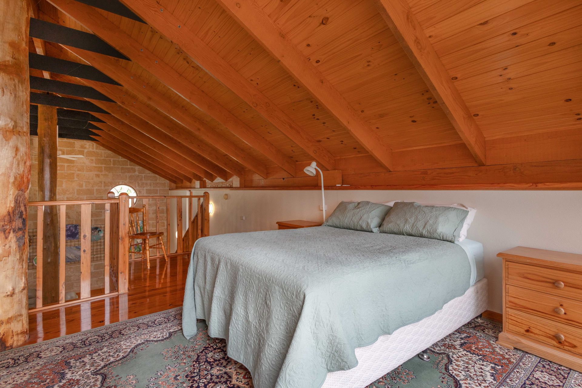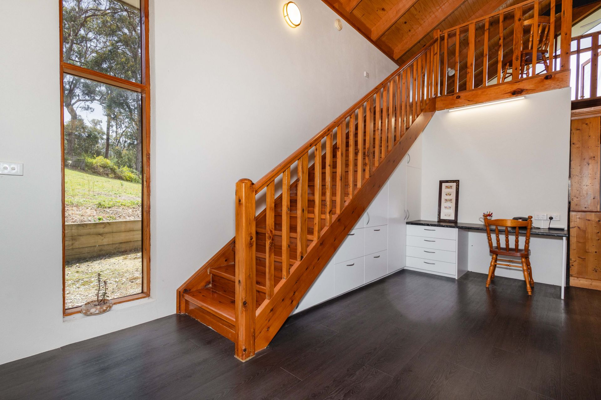 Downstairs, you'll find a fully equipped kitchen, bathroom with laundry, a spacious second bedroom, and a cosy living area centred around a solid wood fireplace set against a stunning sandstone feature wall-complete with a convenient outdoor wood box and split system heating and cooling for year-round comfort.