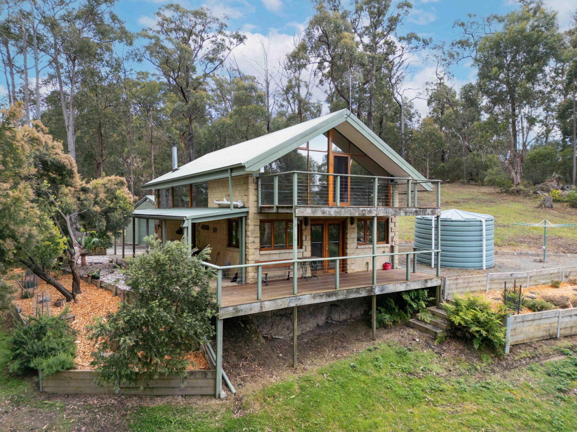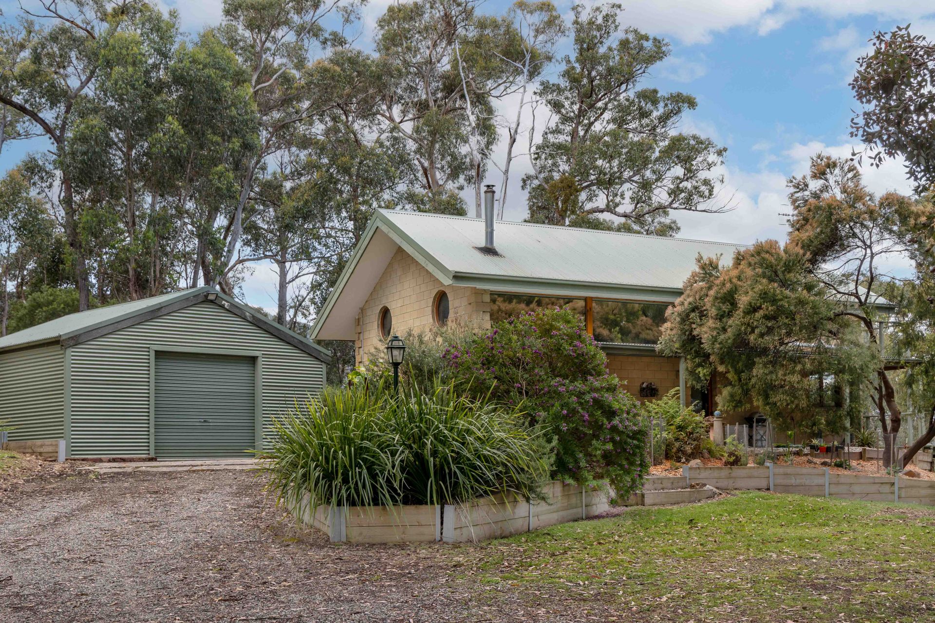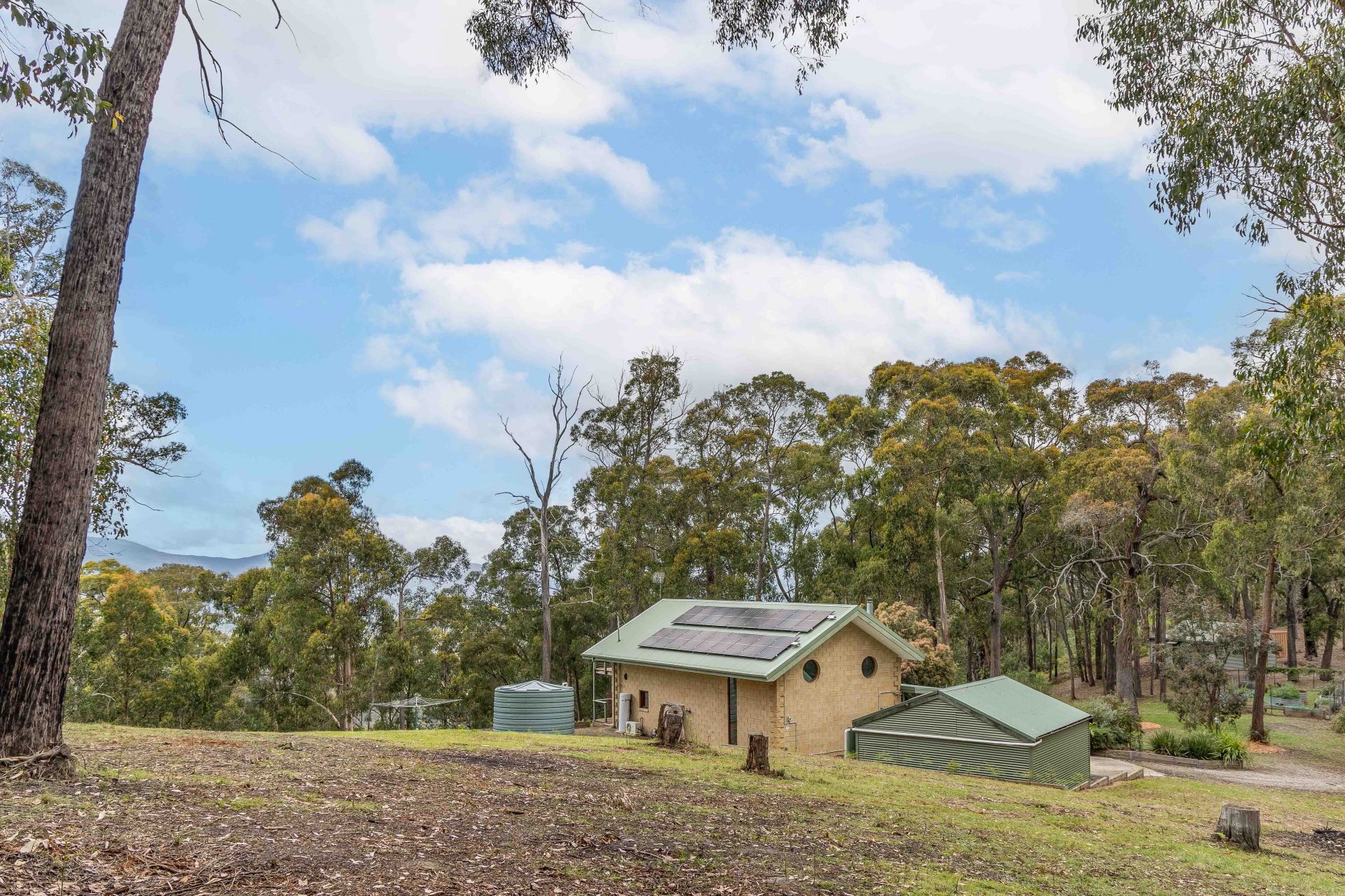 Enjoy the benefits of an off-grid, sustainably powered lifestyle with mains electricity, back up solar panels, and water tanks-all minimising bills while maximising comfort. Additional features include a fenced vegetable patch, a double lock-up garage (or workshop), ample room for extra vehicles, and a plentiful supply of on-site firewood.