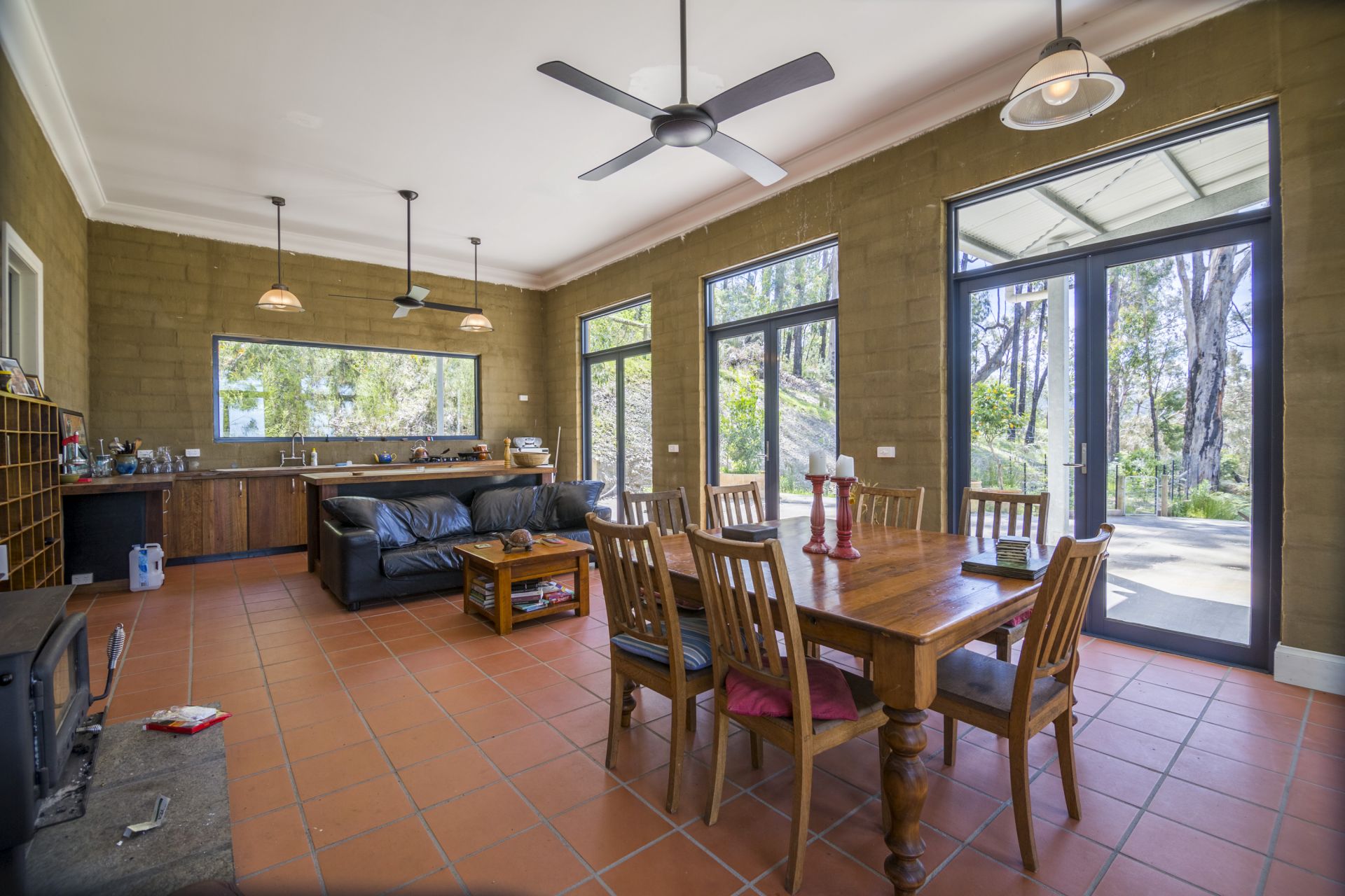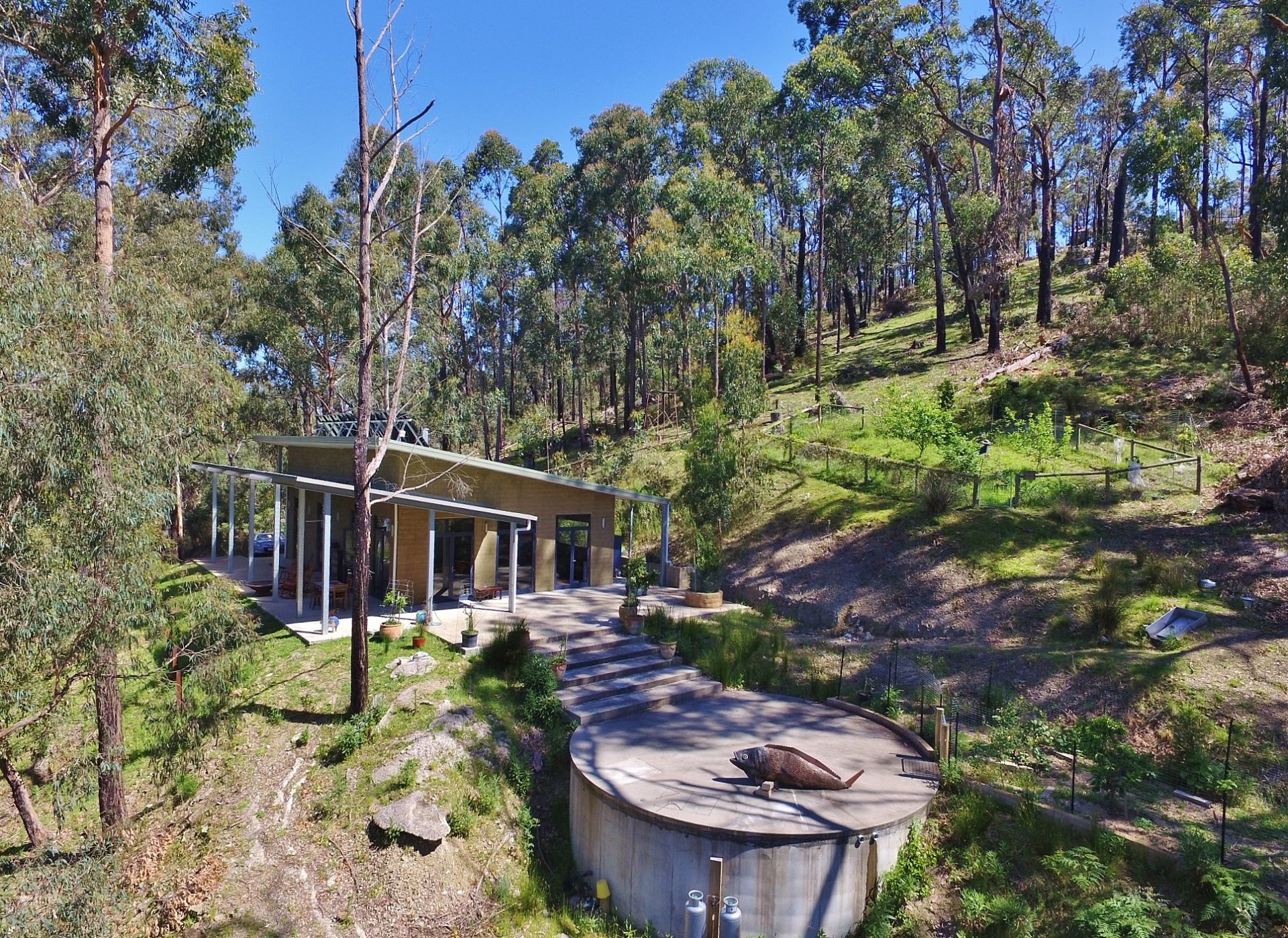 Featuring 30,000 gallons of tank water and your own separate underground fire shelter should the need arise, fully fenced veggie garden, 2 solid fuel wood heaters with enough wood on the property to last all year round.
