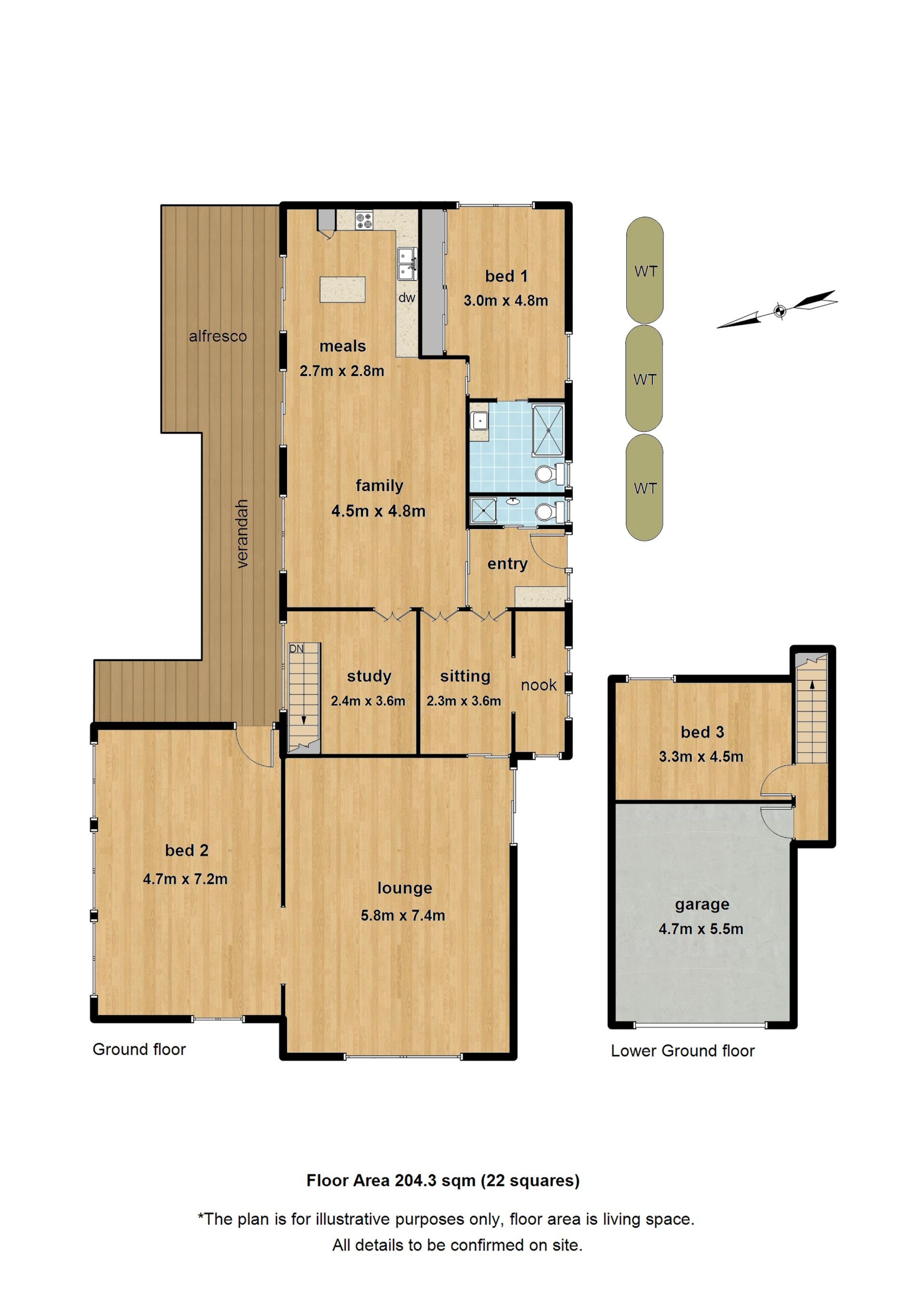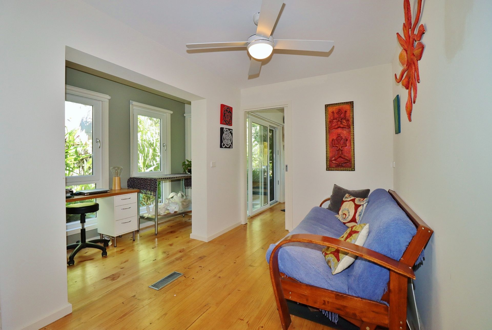 Offering a spacious master bedroom with ensuite & BIR's at the rear of the home, plus 2 additional bedrooms, sitting room plus study nook. Featuring a versatile open plan living room that is currently used as a Yoga / Pilates studio or as well as a separate gym or large bedroom.