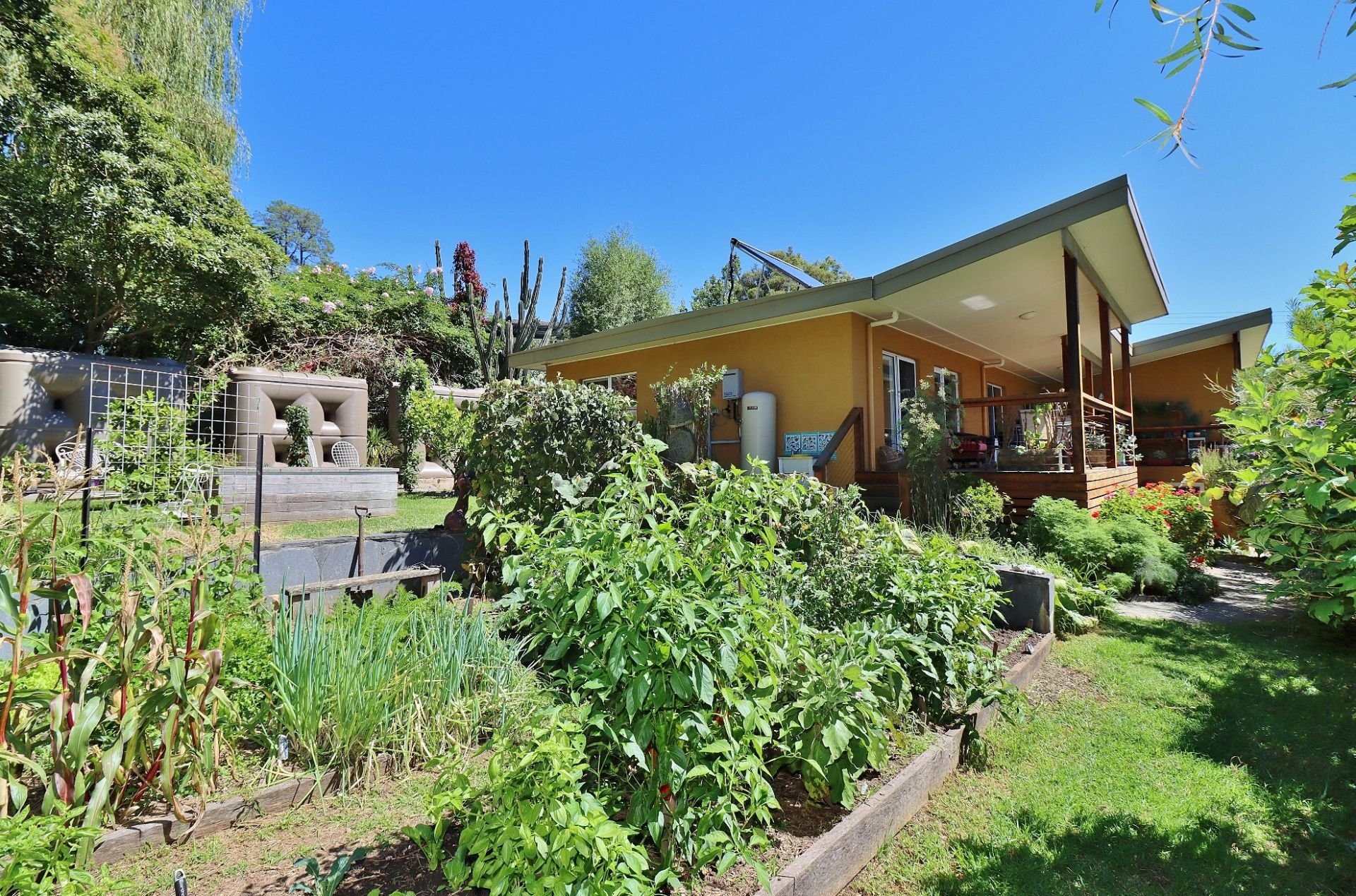 Outside you can immerse yourself in the highly productive garden that produces fresh fruit and vegetables all year round. With nearly 20,000 lts of tank water, solar hot water this home must be seen to be appreciated.